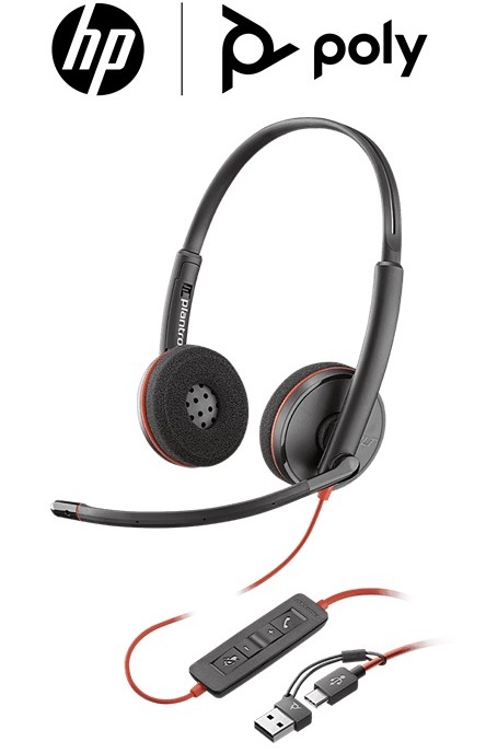 Poly Blackwire 3220 Stereo USB-C Headset +USB-C/A Adapter